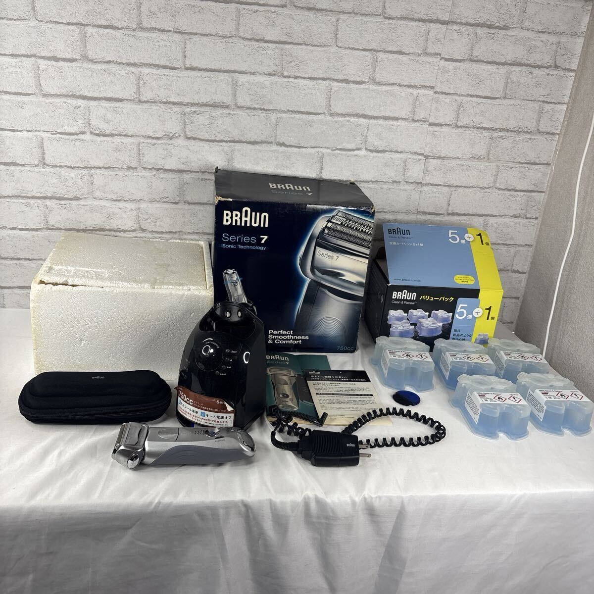 - 【通電確認済】BRAUN ブラウン シリーズ7 電気シェーバー 洗浄器付き 洗浄液5個付き 剥がれあり