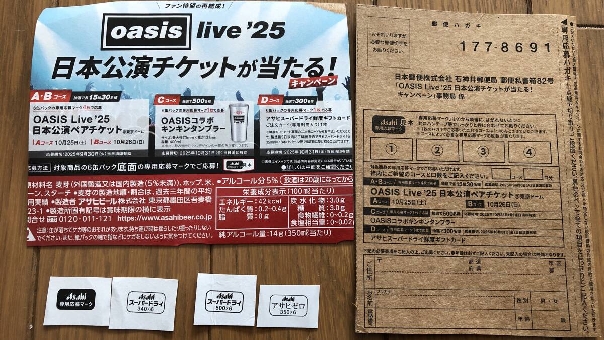 > ★アサヒスーパードライ OASIS Live ’25 キンキンタンブラー 鮮度ギフトカード キャンペーン 応募券4枚 オアシス