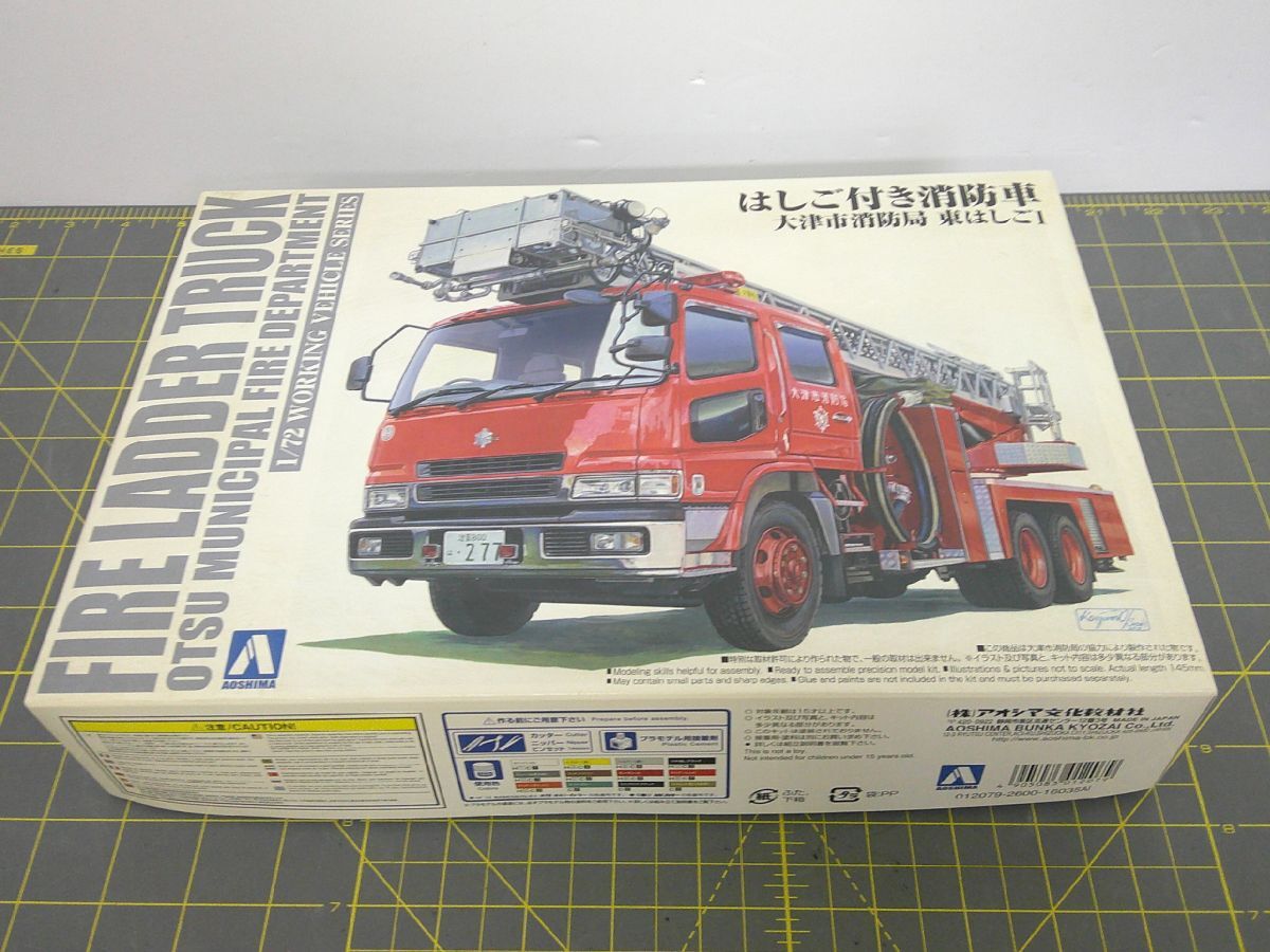- 34 送80サ 0929YB27 アオシマ プラモデル 1/72 はしご付き消防車 大津市消防局 東はしご1
