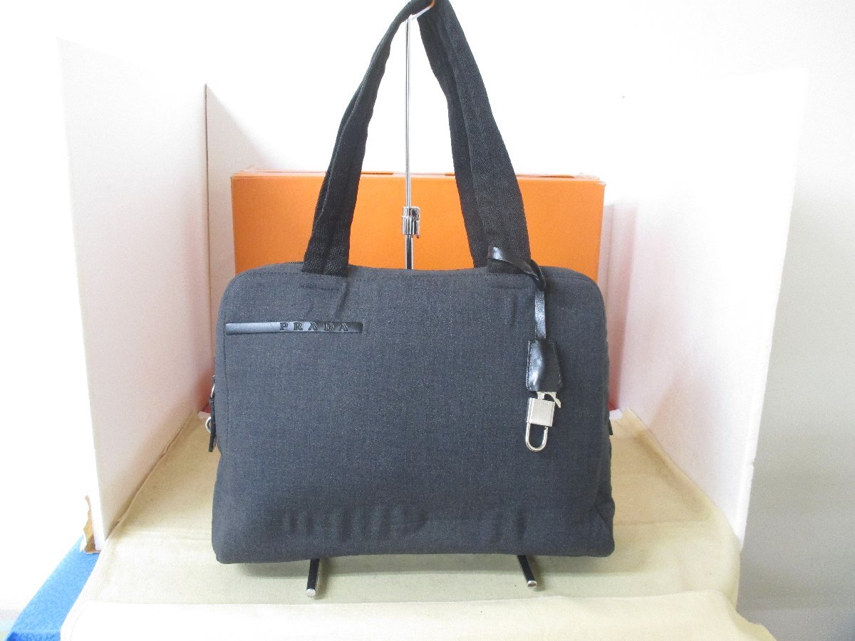 > 本物保証【即決で送料無料】黒/プラダ/キャンパス/ハンドバッグ/トート/ミニボストン/プラダスポーツ/PRADA鍵&キー2本&クロシェット付/正規