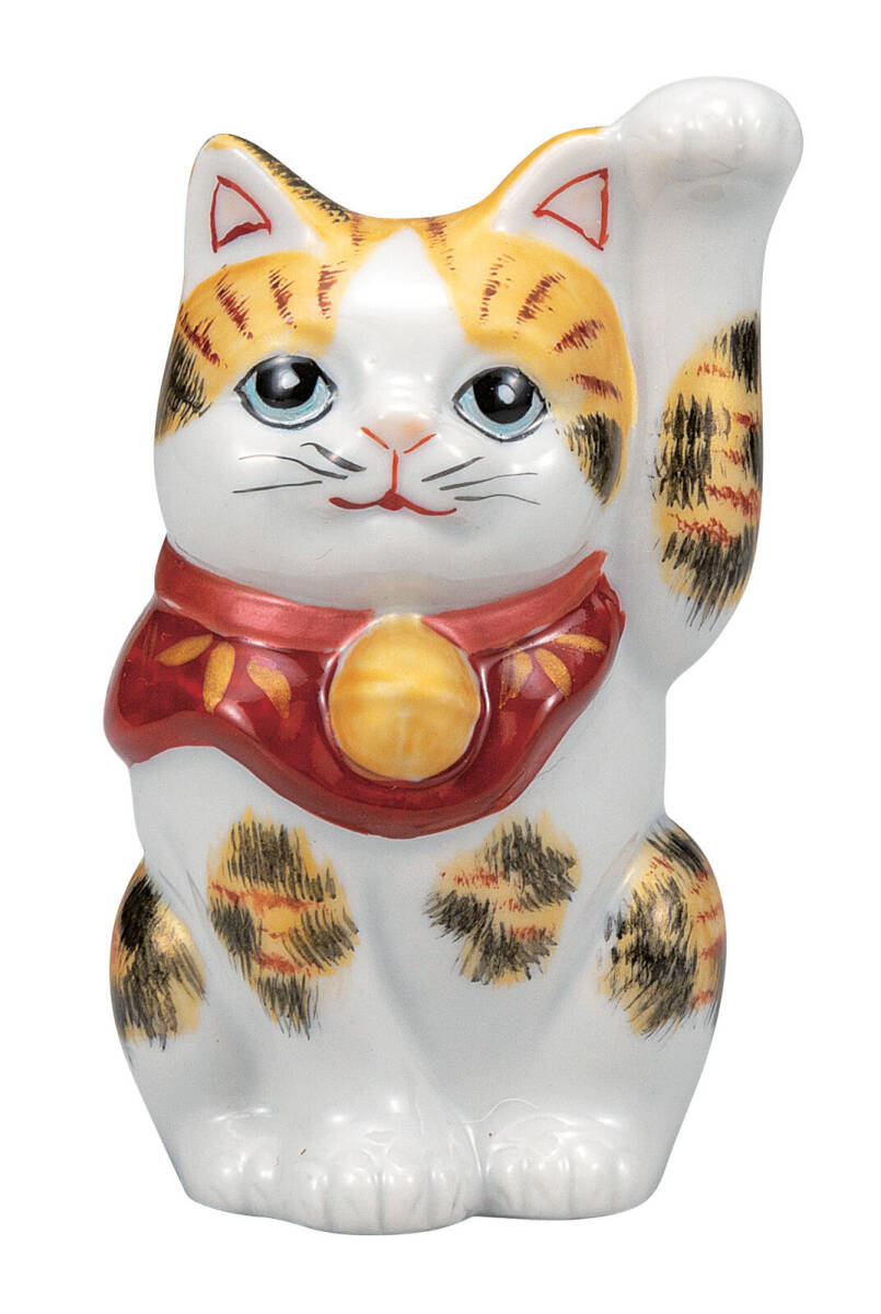 > 九谷焼! ☆金彩三毛・招き猫2.8号☆ K9-1552 新品 商売繁盛 縁起物 千客万来 開運 置物 招き猫 ギフト
