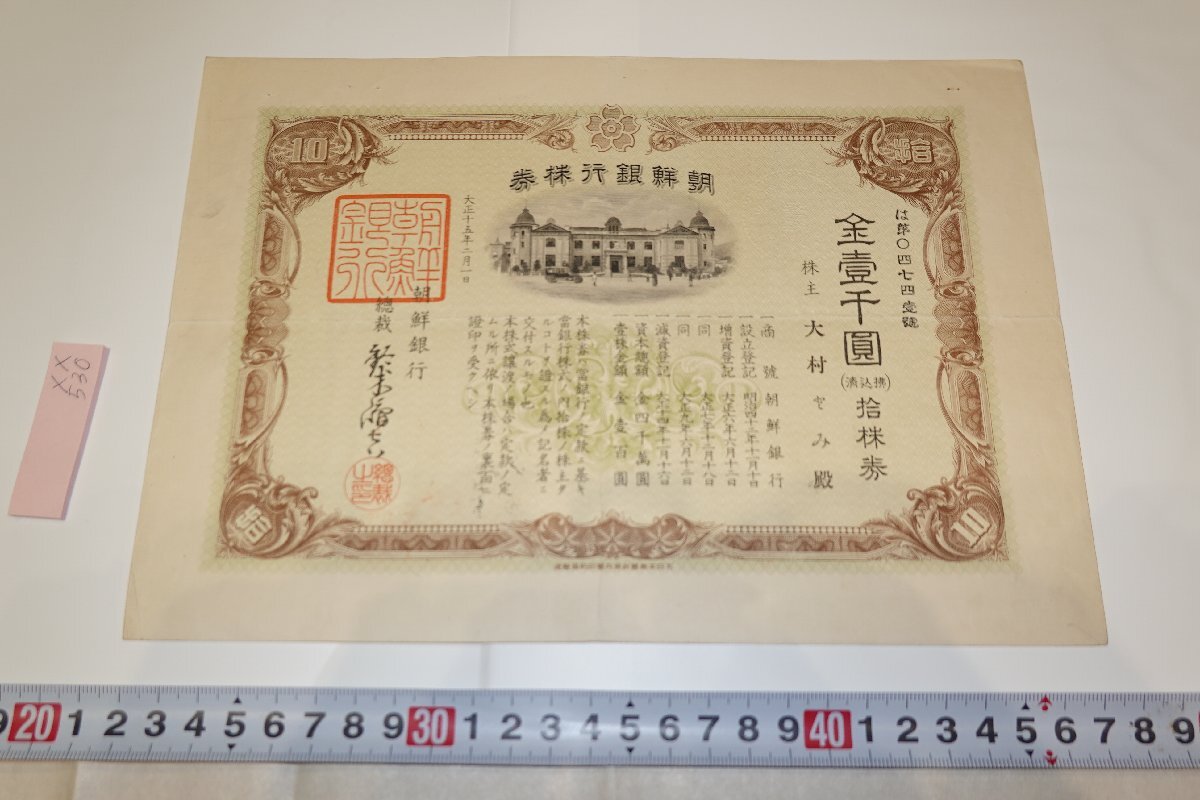 - rarebookkyoto 530 李朝朝鮮・・朝鮮銀行株券 使用済・壱千圓 大正15 1926年 京都古物