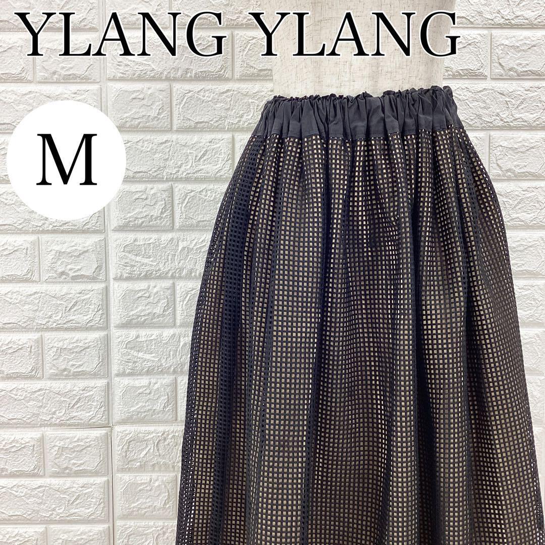 - 【AA4322】 YLANG YLANG イランイラン メッシュスカート ミディ丈 レディース メッシュ ギャザーウエスト フレアシルエット