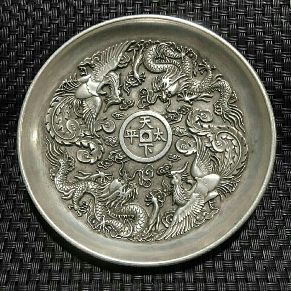 - 銅 古双龍双鳳皿 天下太平皿 龍皿 騰雲龍皿 竜飛 雲舞皿 工芸品 置物 置物 小置物 鎮宅 長寿龍 置物