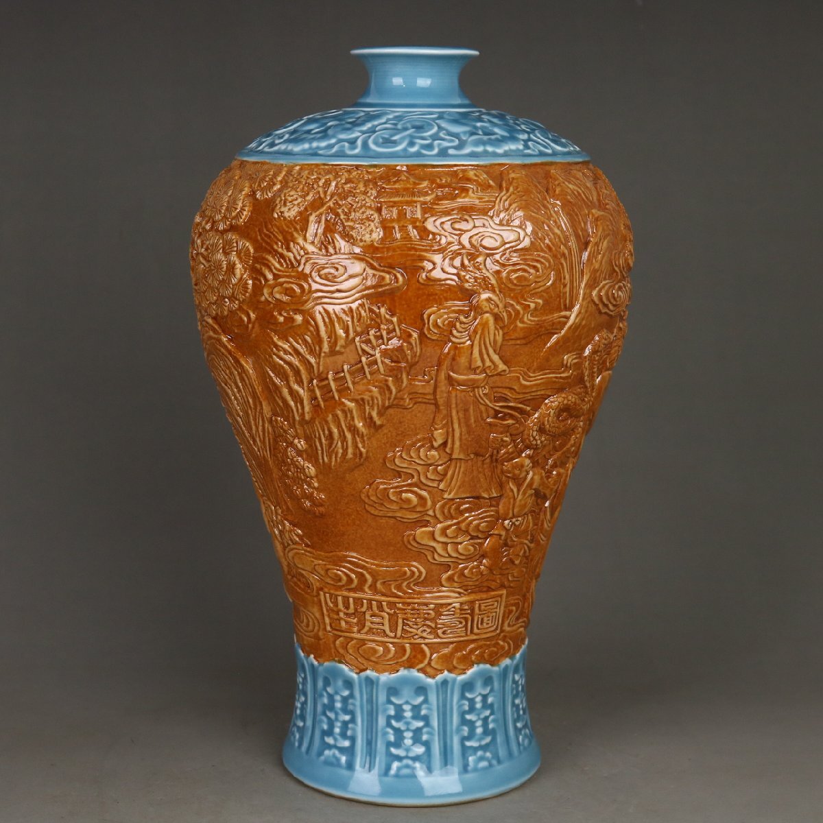 - 景徳鎮 花瓶 浮き彫り 十二支 十二支賀寿図 粉彩 磁器 観賞 磁器 置物 装飾 中国美術品 工芸品 収蔵 コレクション zh350