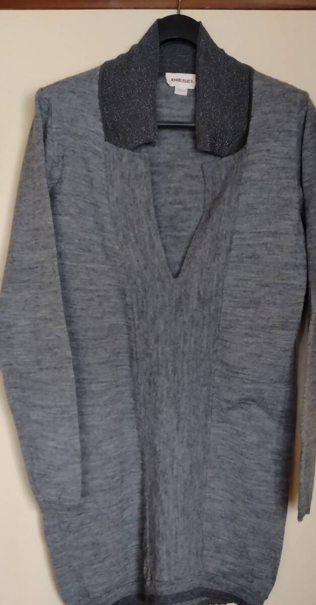 > DIESEL ディーゼル ニット グレー イタリア製 ITALY S セーター 美品 ベルト セット レザー ロゴ ブラック BLACK ウール 黒