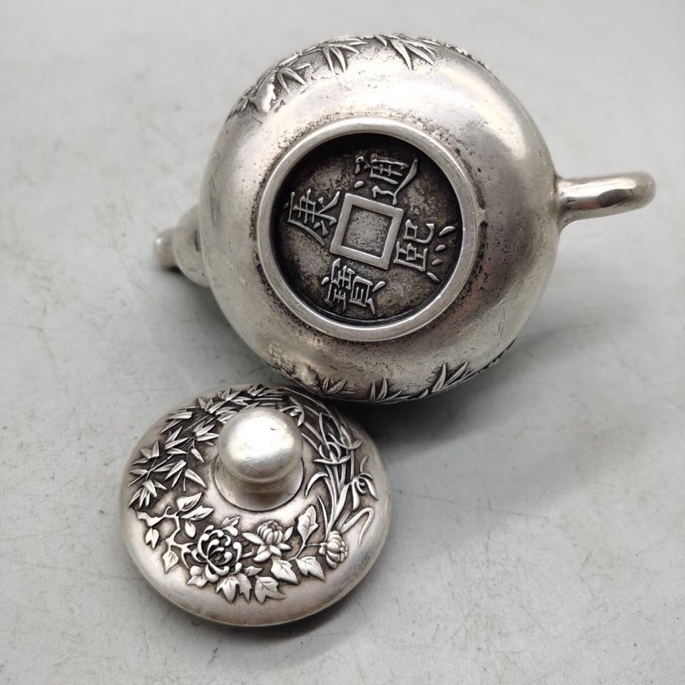 - 珍品 旧蔵 古銅彫 銅製 塗銀 銀壺 茶器 茶壺 煎茶道具 極細工 置物 擺件 中国美術 装飾 sux032