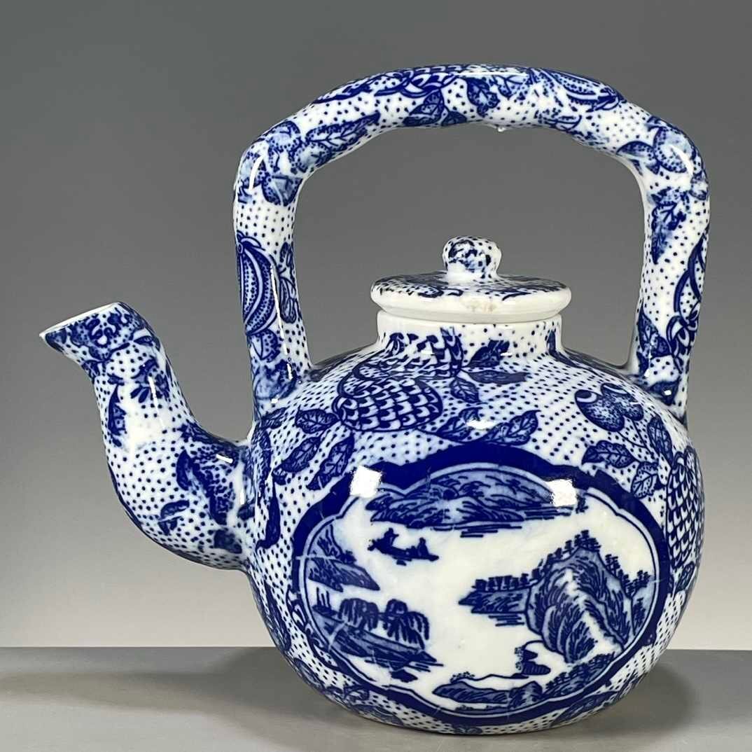 - 青花開窓山水図紋急須 置物 開片 装飾品 磁器 中国陶磁 収蔵品 中国美術品コレクション