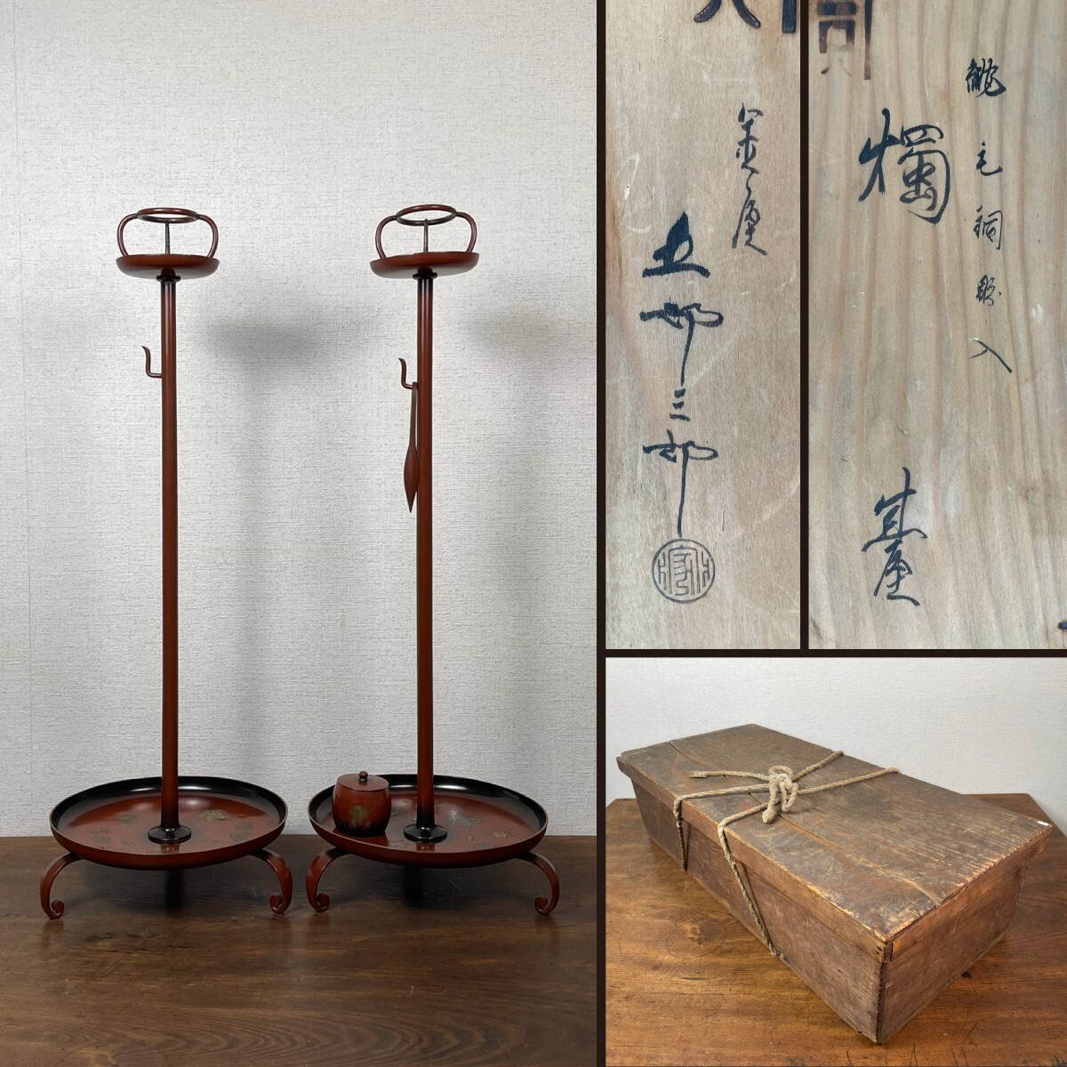 - A542 金屋 五郎三郎 宣徳銅 花象嵌 燭台 燭基 共箱 江戸時代 分割式 仏具 古道具 伝統工芸品 骨董品 時代物 アンティーク