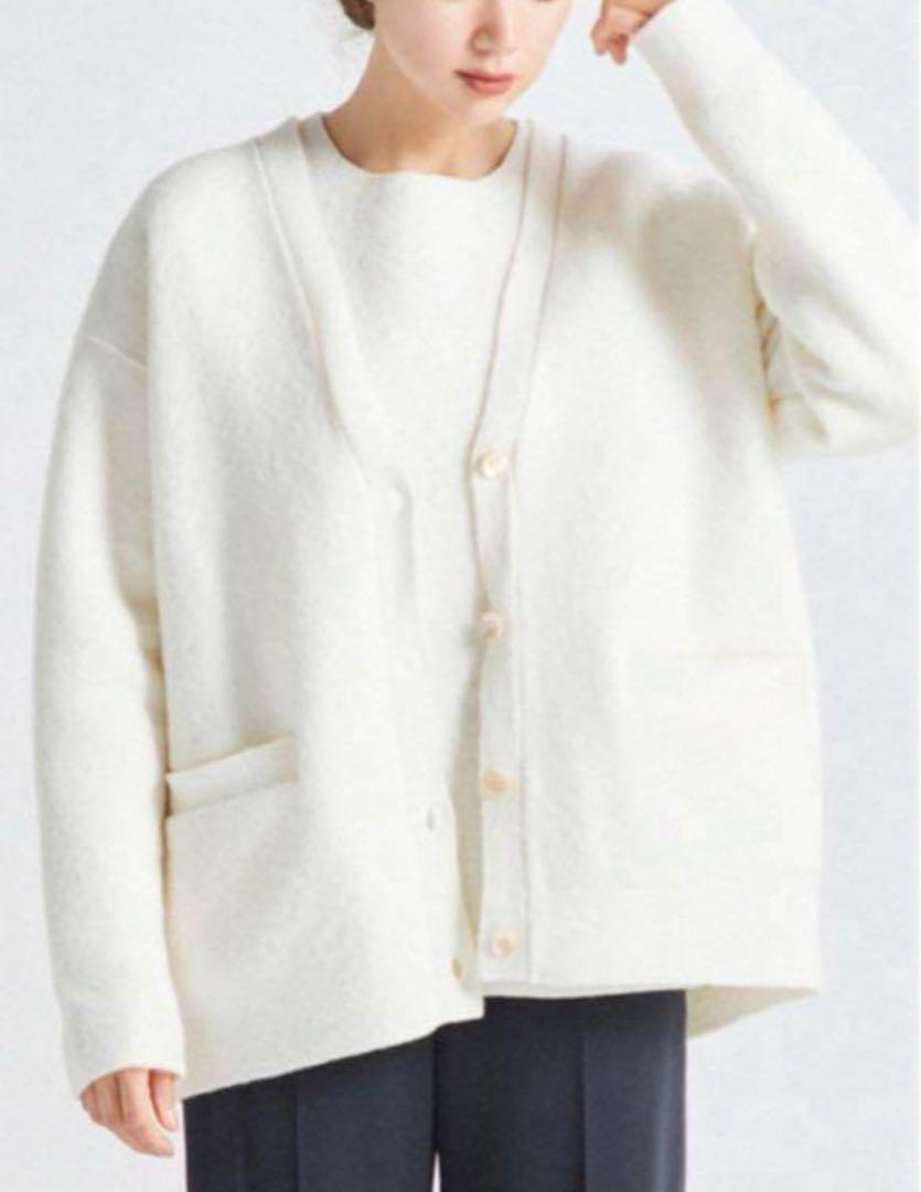 - 美品 22AW yori ヨリ 圧縮ニットカーディガン ホワイト 白 ウール100% 毛 アイボリー ドロップショルダー オーバーサイズ フリーサイズ