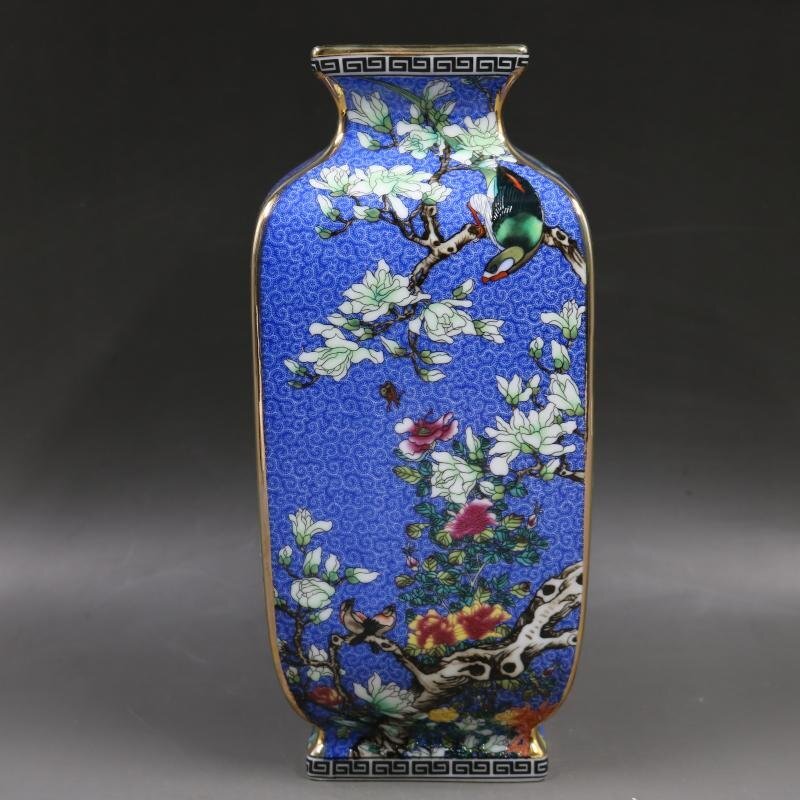 - 景徳鎮 官窯焼き 四方花瓶 花鳥花瓶 琺瑯彩 粉彩 花鳥 観賞 磁器 置物 装飾 収蔵 コレクション zh347