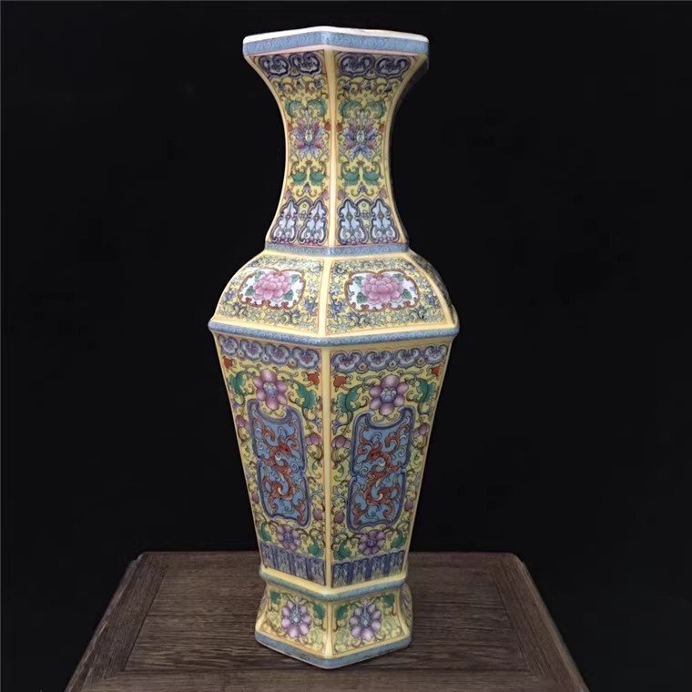 - 景徳鎮 粉彩 琺瑯彩 六方瓶 花瓶 磁器 陶磁器 観賞 置物 中国美術品 工芸品 収蔵 コレクション zh106