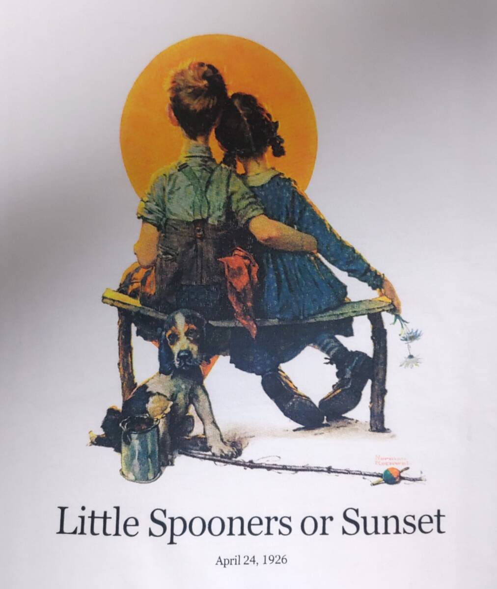 > 2025UNITEDARROWS別注 N.Rockwell『THE SATURDAY EVENING POSTプリントT LittleSpoonersorSunset』半袖丸首白M・身幅約54cm 前プリ※未使用