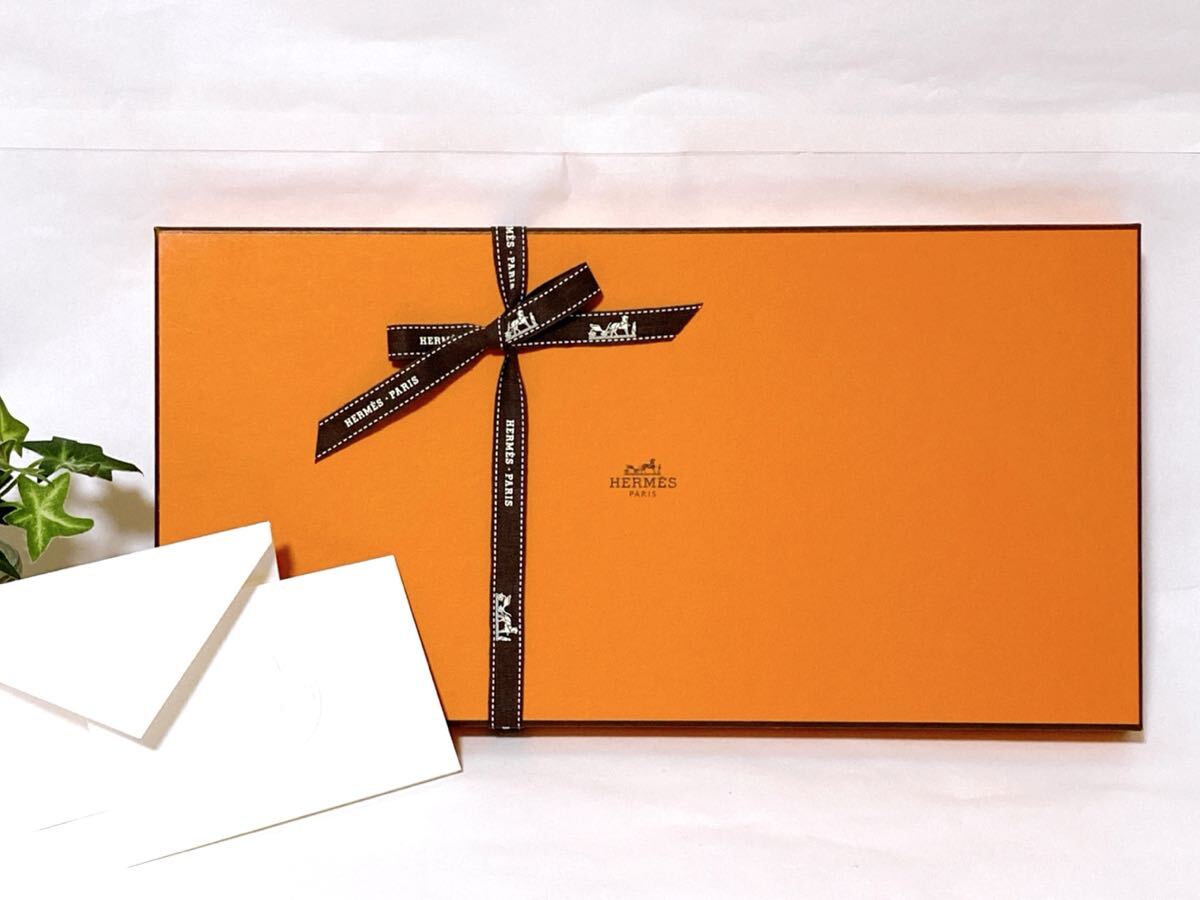 > エルメス「HERMES」空箱とメッセージカード 薄型 現行 (6092) 正規品 付属品 オレンジ色 薄紙あり エルメス箱 布製品などに ボックス 箱