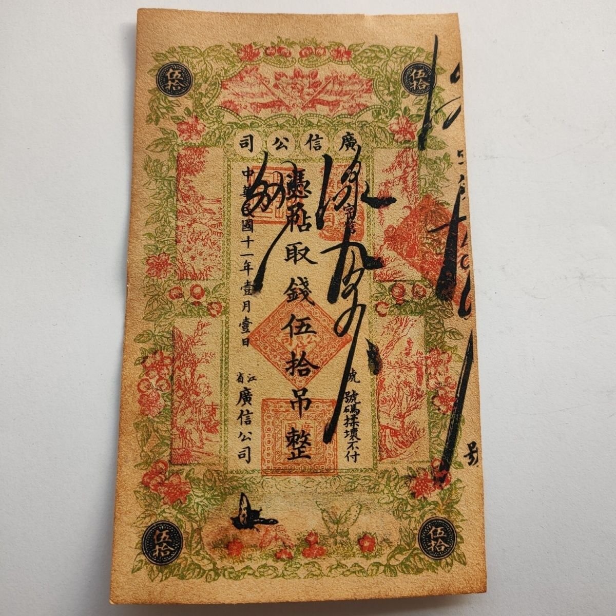 - 送料無料 中国紙幣 民国十一年黒龍江広信銀行五十元 銀票 美品 外国紙幣 鑑賞 工芸品 簡易包装 郵便発送 ZH1083
