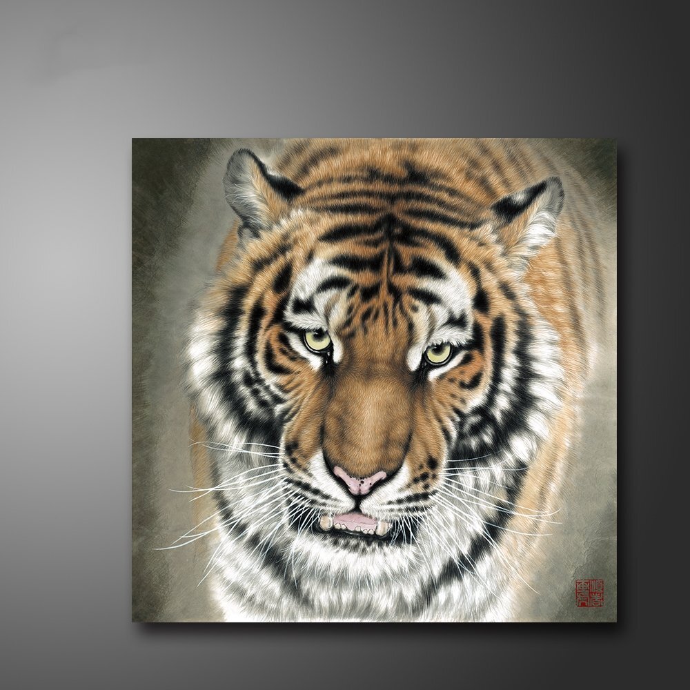 - 中国美術 中国水墨画 トラ 虎 リビング 掛軸 縦軸 学習見本 表装なし 画仙紙 画芯 鑑賞 装飾 50*50cm 印刷 zh1659
