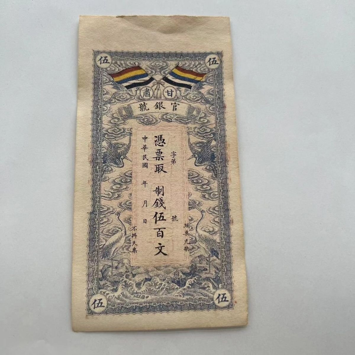 - 送料無料 中国紙幣 銀票 民国時代 民国八年 甘粛省造 500文 美品 外国貨幣 簡易包装 郵便発送 ZH687