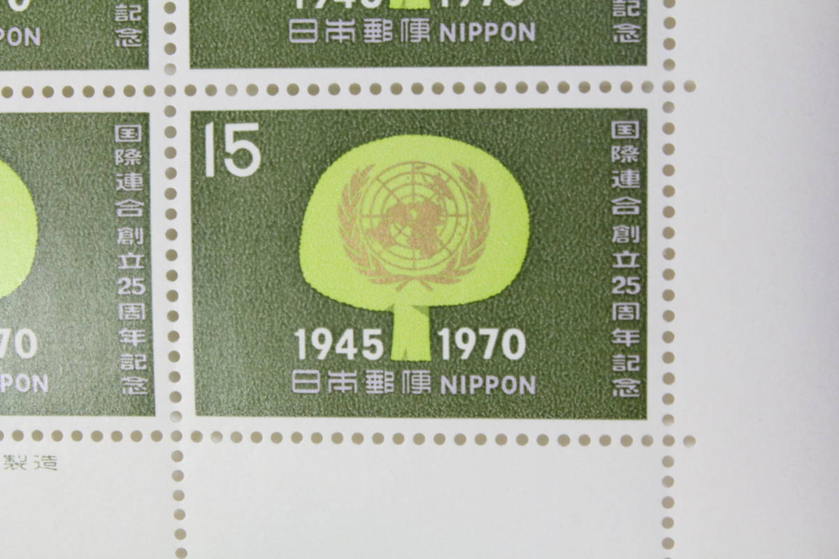 - 〇未使用15円切手シート1枚 1970年 国際連合創立25周年記念 樹木と国連マーク
