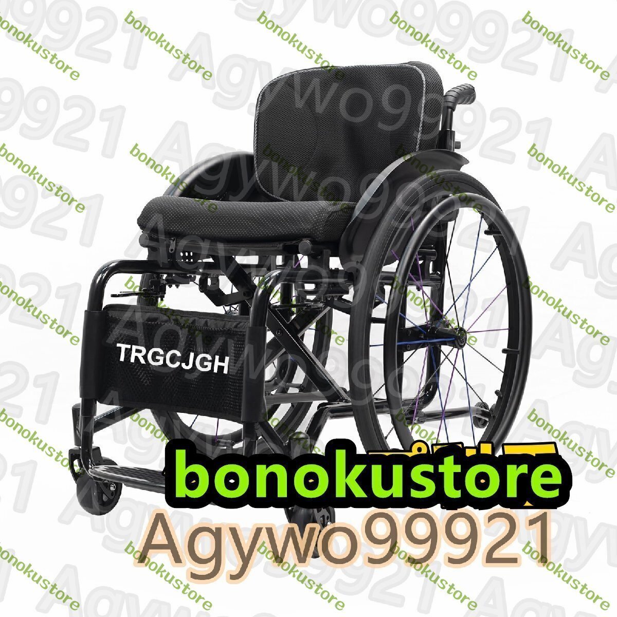 > スポーツ成人用自走式軽量折りたたみ車椅子、障害者用手動車椅子 旅行用 外出用 折り畳み車いす コンパクト 車いす 車イスBlack
