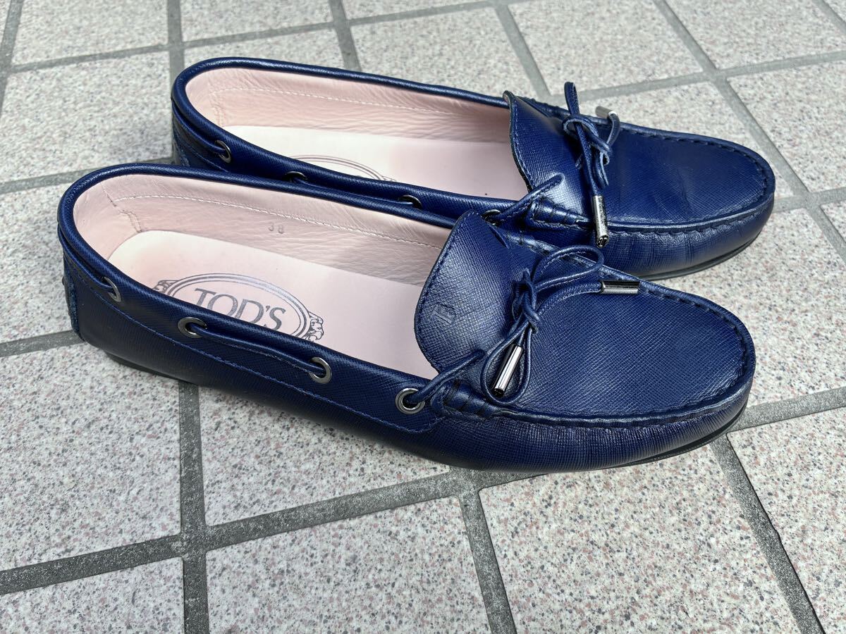 - 超美品!トッズTOD’S 女性用 本革シューズ、38、ネイビー、TOD’S布靴袋一枚付き