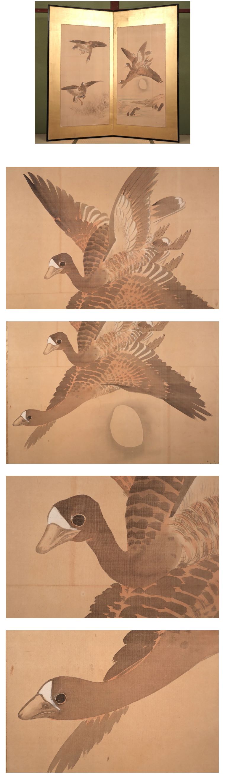★また、ヤフオク!の規約により、屏風の状態を簡単に記載しておりますが、もともと中古もしくは骨董の屏風になりますので、状態が良好と記載してあります場合にも、多少の傷やシミがある場合がございます。