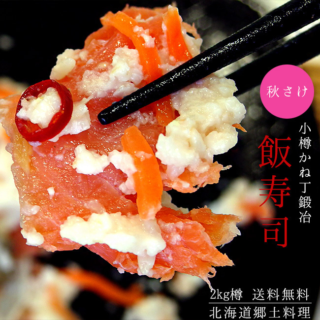 > 秋さけ飯寿司2kg(秋鮭のいずし アキザケ飯寿司)(北海道の郷土料理 正月 漬物 発酵食品)小樽かね丁鍛冶商店※送料無料