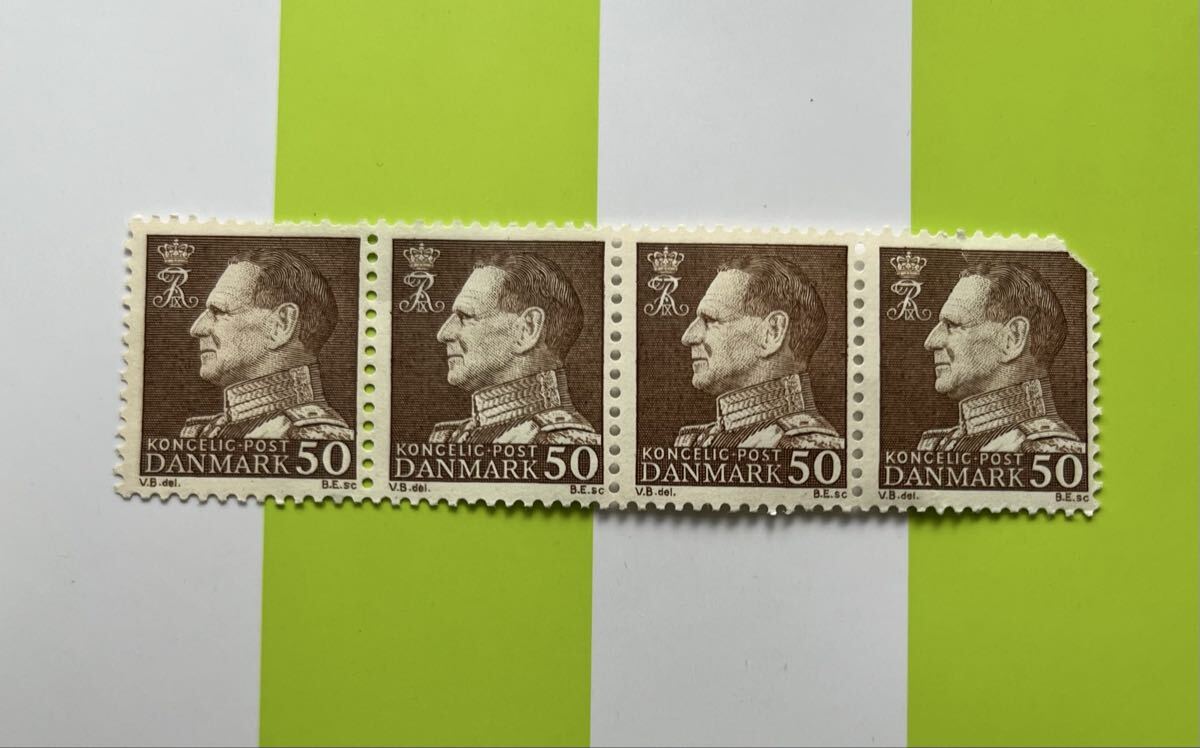 - デンマーク切手 フレゼリク9世 50オーレ 4枚 未使用 昭和 レトロ 1967