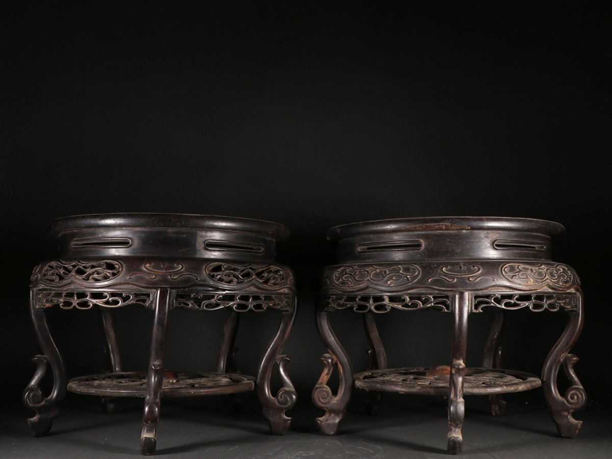 - 【安】清時代 珍木紫檀 錯銀絲 五足台座一対 花架 極細工 古置物 古擺件 中国古美術 時代物 古董品 304