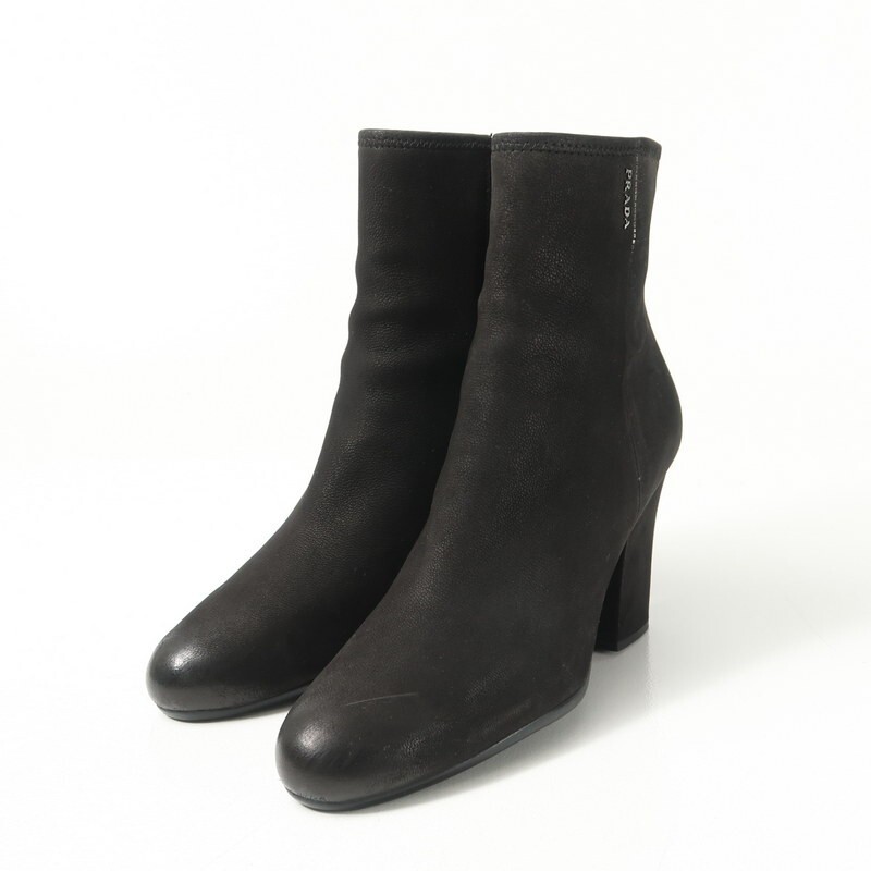 > GS2757▼プラダスポーツ PRADA*ヌバックレザー サイドジップ ショートブーツ 37.5(24.0cm相当) 靴 3T5860 ロゴメタル ブラック