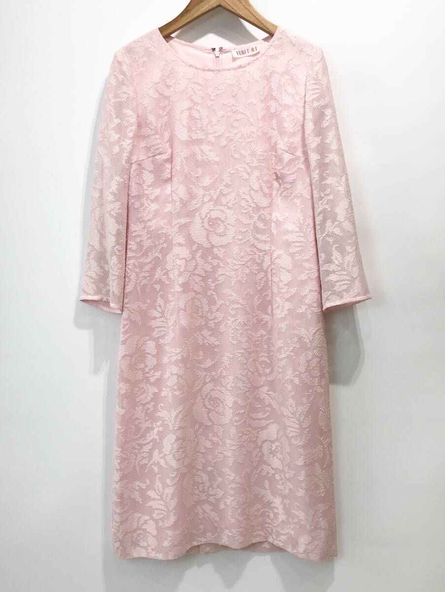 > YUKI TORII 花柄 ワンピース ドレス タック ひざ丈 バックスリット フラワー ピンク 01181104 鳥居ユキ ユキトリヰ SIZE:9■0924Z
