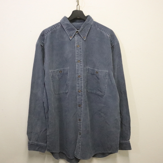 > B990 90sビンテージ エディーバウアー 長袖コーデュロイシャツ■1990年代製 表記Lサイズ ブルー ボタンダウン 無地 アメカジ 古着 古着卸
