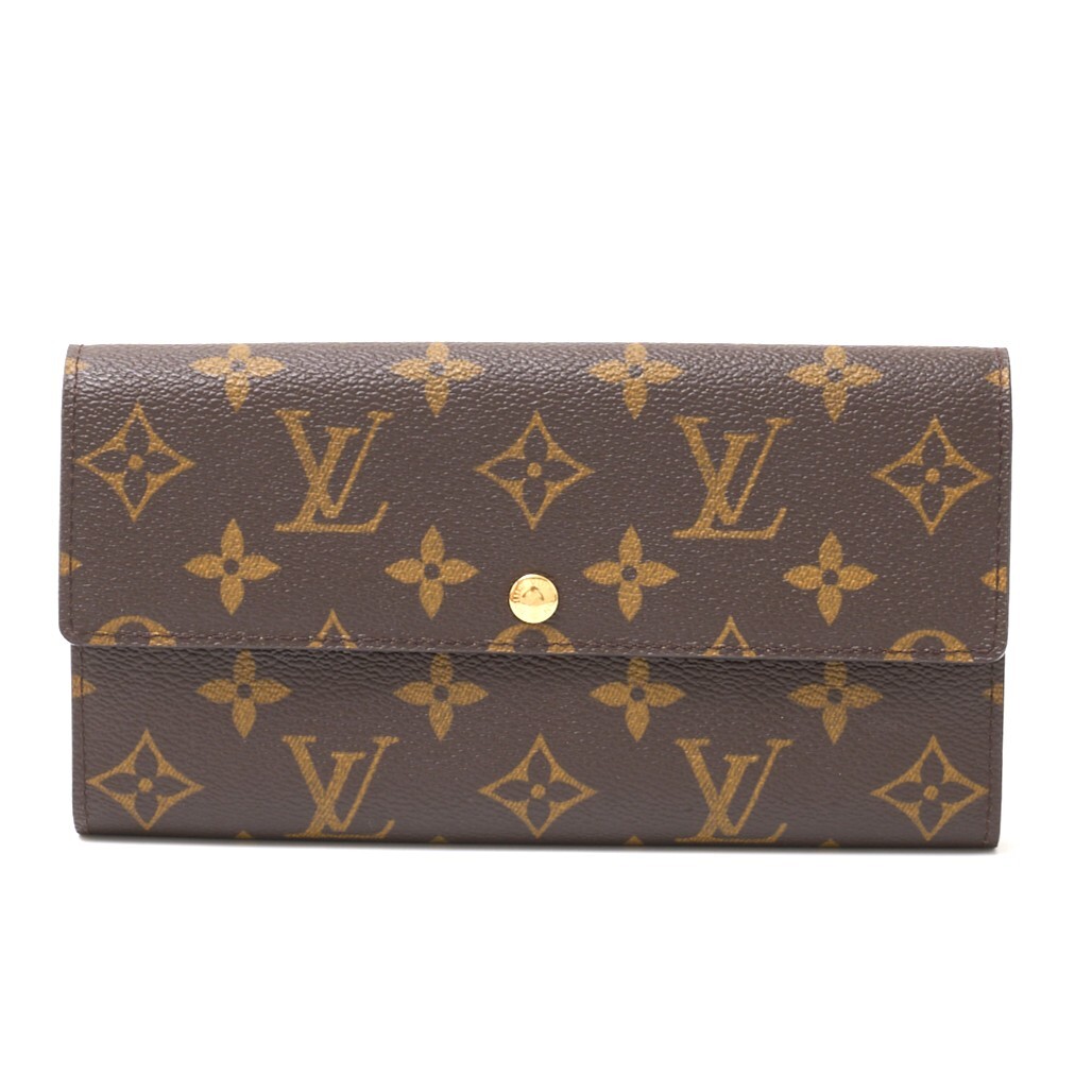 - LOUIS VUITTON ルイヴィトン 二つ折り 長財布 ウォレット モノグラム×レザー ブラウン×ゴールド金具 レディース
