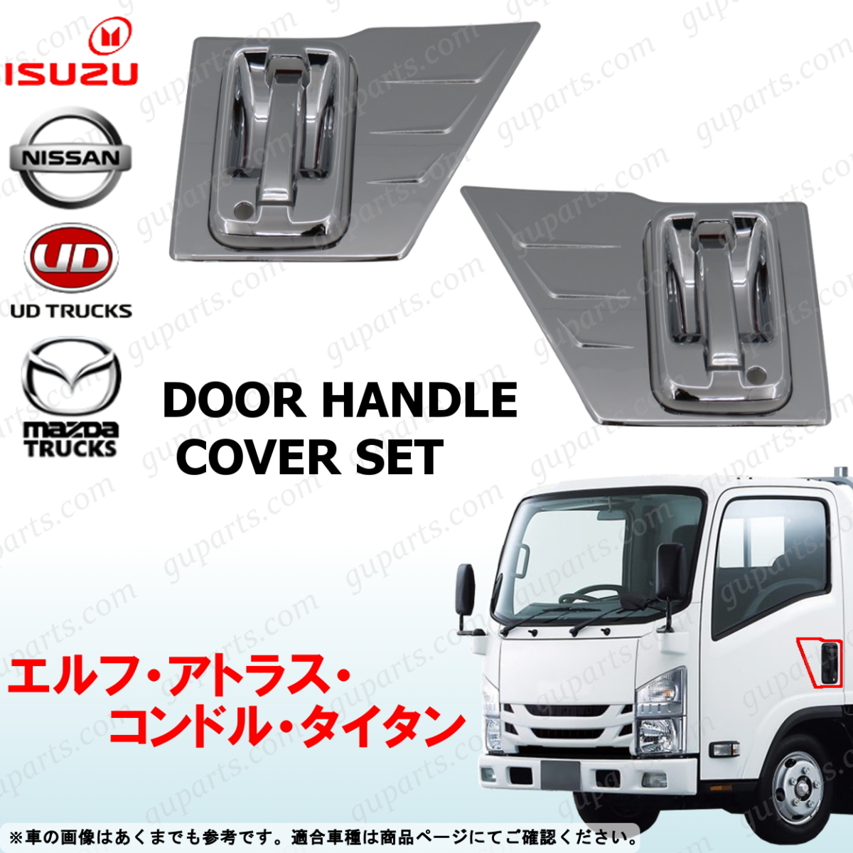 - 07 エルフ アトラス コンドル タイタン ハイキャブ ワイド 左 右 ドア ハンドル プロテクター カバー メッキ NMR NMS NLS NLR NPR NNR NNS