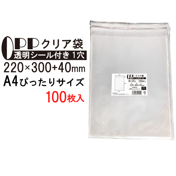 - OPP クリア袋 A4ぴったりサイズ テープ付き 220mm×300mm+40mm 100枚 35μ フレームシール加工 空気穴付き 透明封筒