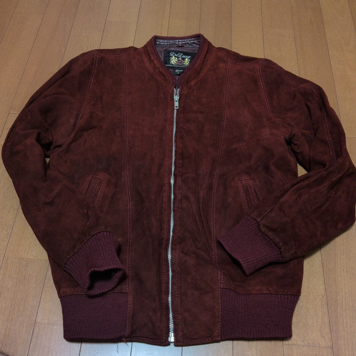 - 80s DELUXE レザージャケット スエード 赤系 バーガンディーレッド ヴィンテージ アメカジ 古着 ノーカラー ブルゾン 本革 ライダース