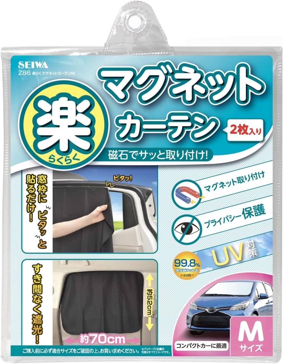 - 車内用品 カーテン 楽らくマグネットカーテン 遮光生地 Mサイズ Z86 磁石貼付 日よけ プライバシー保護 直射日光 紫外線対策 取付簡単 災害