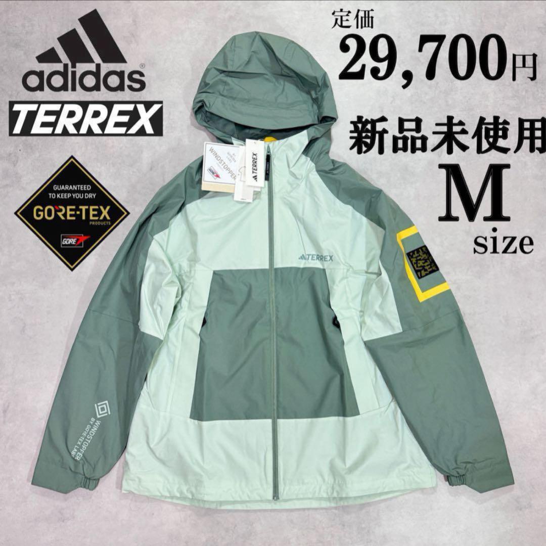 > 新品 Msize アディダス GORE-TEX テレックス ジャケット 緑 TERREX GTX ウィンドストッパー ナイロン ジャケット パーカー 防風性 撥水性