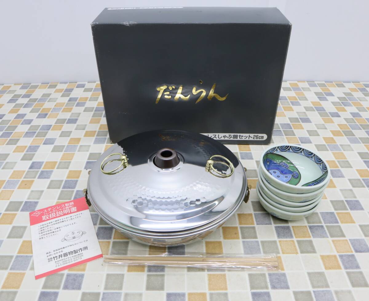 - △調理器具 家族だんらん|ステンレス製 しゃぶしゃぶ鍋 |竹井器物製作所 |箱付き 26cm 容量2.5リットル ■O1250