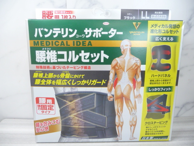 > ☆新品未開封品 バンテリン興和 サポーター 腰椎コルセット 男女兼用 LLサイズ ゆったり大きめ 腰用 強力固定タイプ ブラック(A9252)