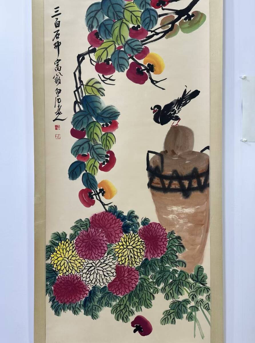 > 書画 早期收集 菊酒延年図 花卉画 旧藏 中国古画 純手描き画 水墨画 古美術品 時代物 中国古玩 骨董品 唐物 宣紙925