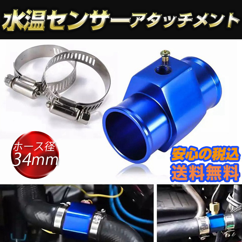 > 税込 水温センサー アタッチメント 追加メーター 取付アダプター NPT1/8 ブルー ホース径34mm オートゲージ ラジエター アルミ2