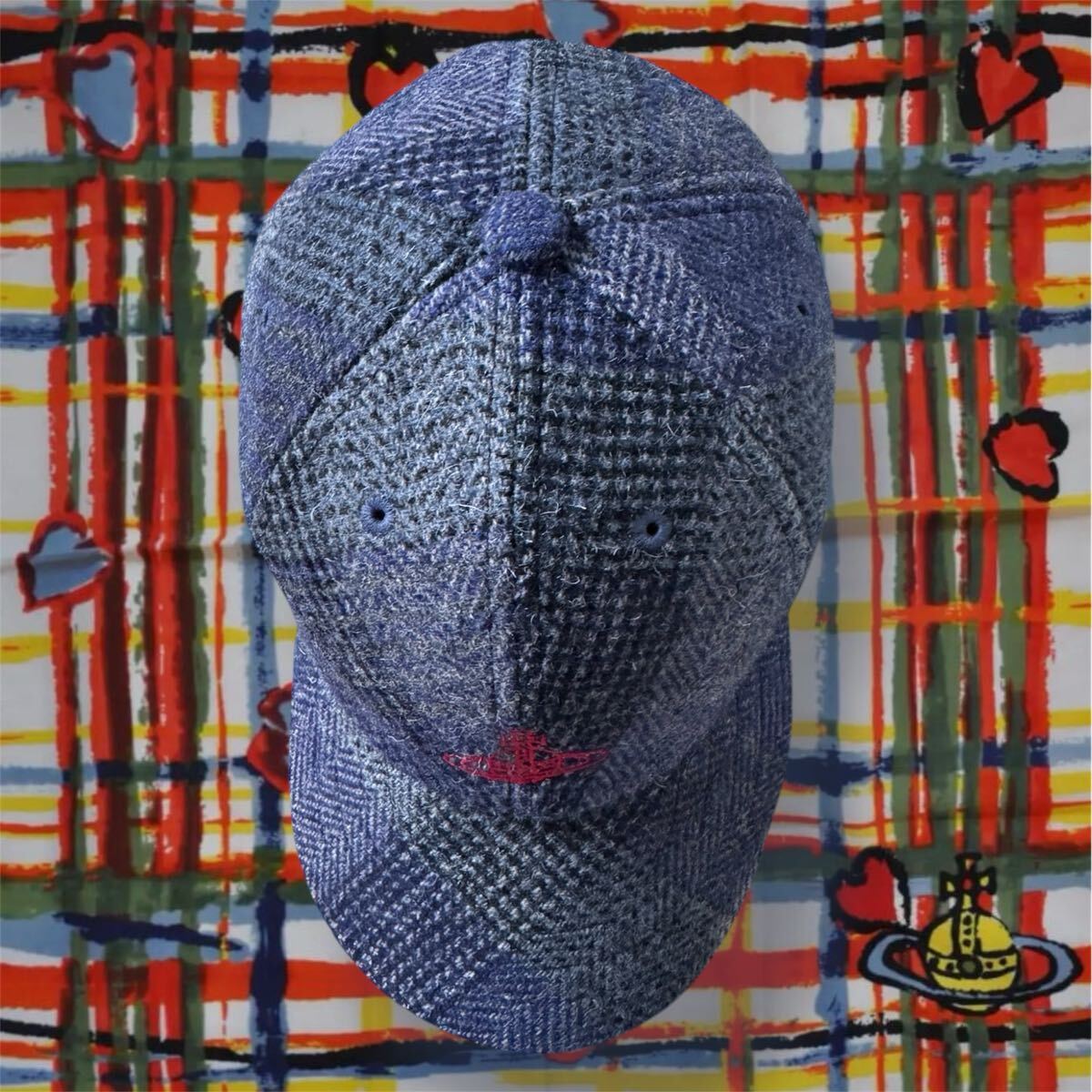 - vivienne westwood ヴィヴィアンウェストウッド ウールツイードチェック総柄刺繍ロゴキャップ ブルー CAP