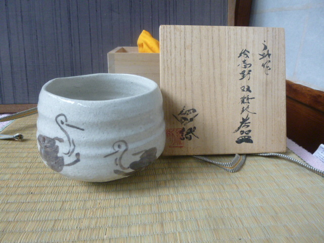 - 絵志野双鶴紋茶碗・加藤宇助(八代)・共箱