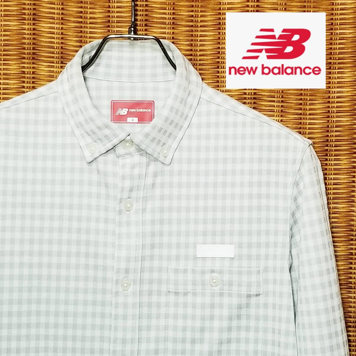 - ◎ New Balance golf ニューバランス ゴルフ/ 長袖 ボタンダウン チェック柄 ゴルフシャツ 胸ポケット SIZE: 4 ホワイト×グレー