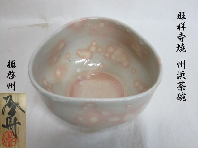 > 雉坂★【 旺祥寺焼 州浜茶碗 讃岐 七宝山 旺祥寺窯 槙啓州 共箱 共布 栞 ニュウあり 】茶道具・抹茶碗・茶碗