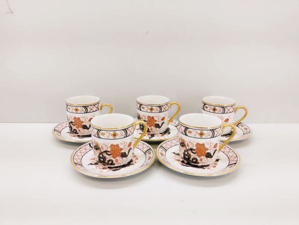 - S/ Ming Royale ミン ロワイヤル 金彩赤絵 花図 デミタスカップ&ソーサー 5客揃 / 日本製 1960年代 ヴィンテージ 磁器 / NY-2342