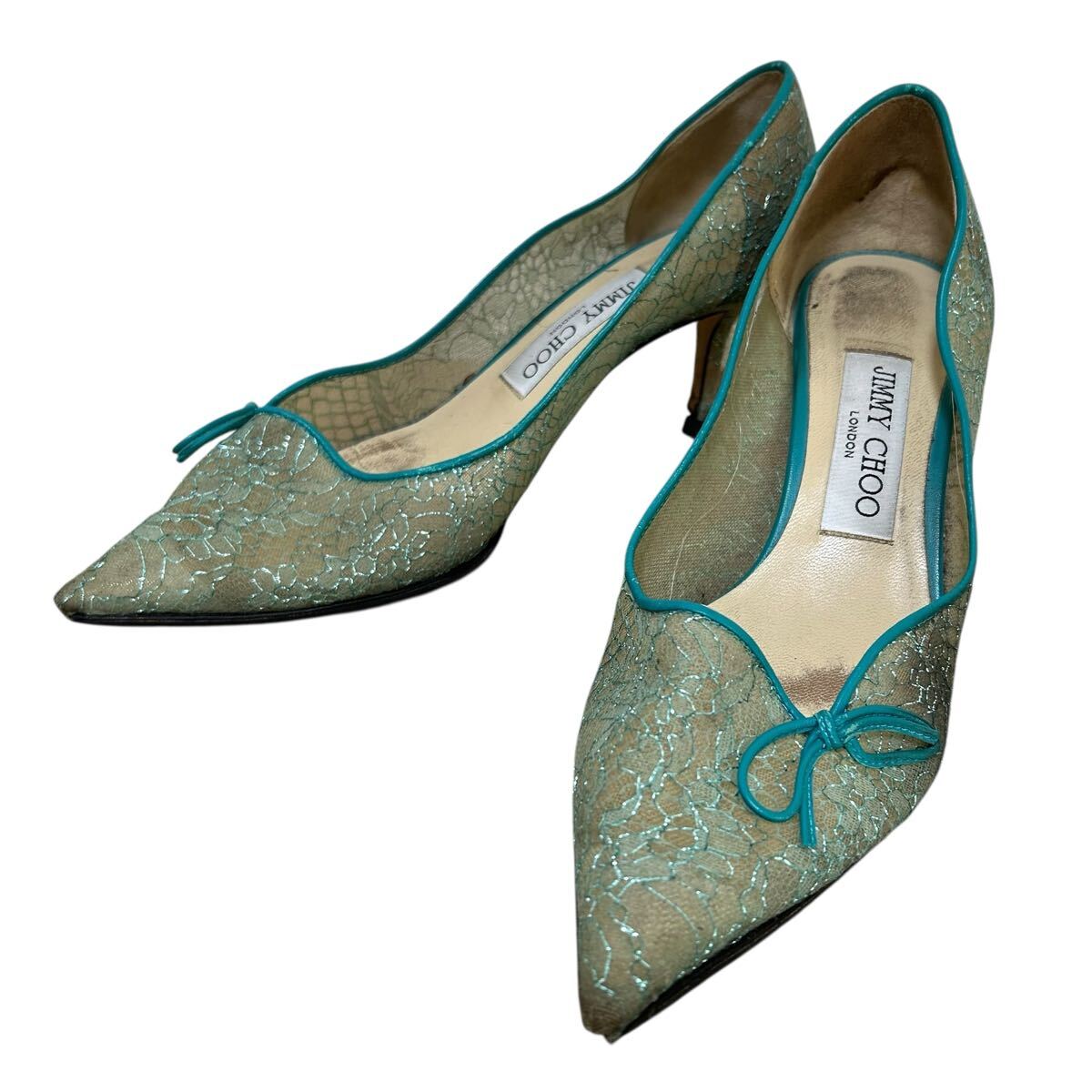 > ※P2 JIMMY CHOO(ジミーチュウ) ヒールパンプス レース ブルー系 イタリア製 表記36.5(23.5cm相当)