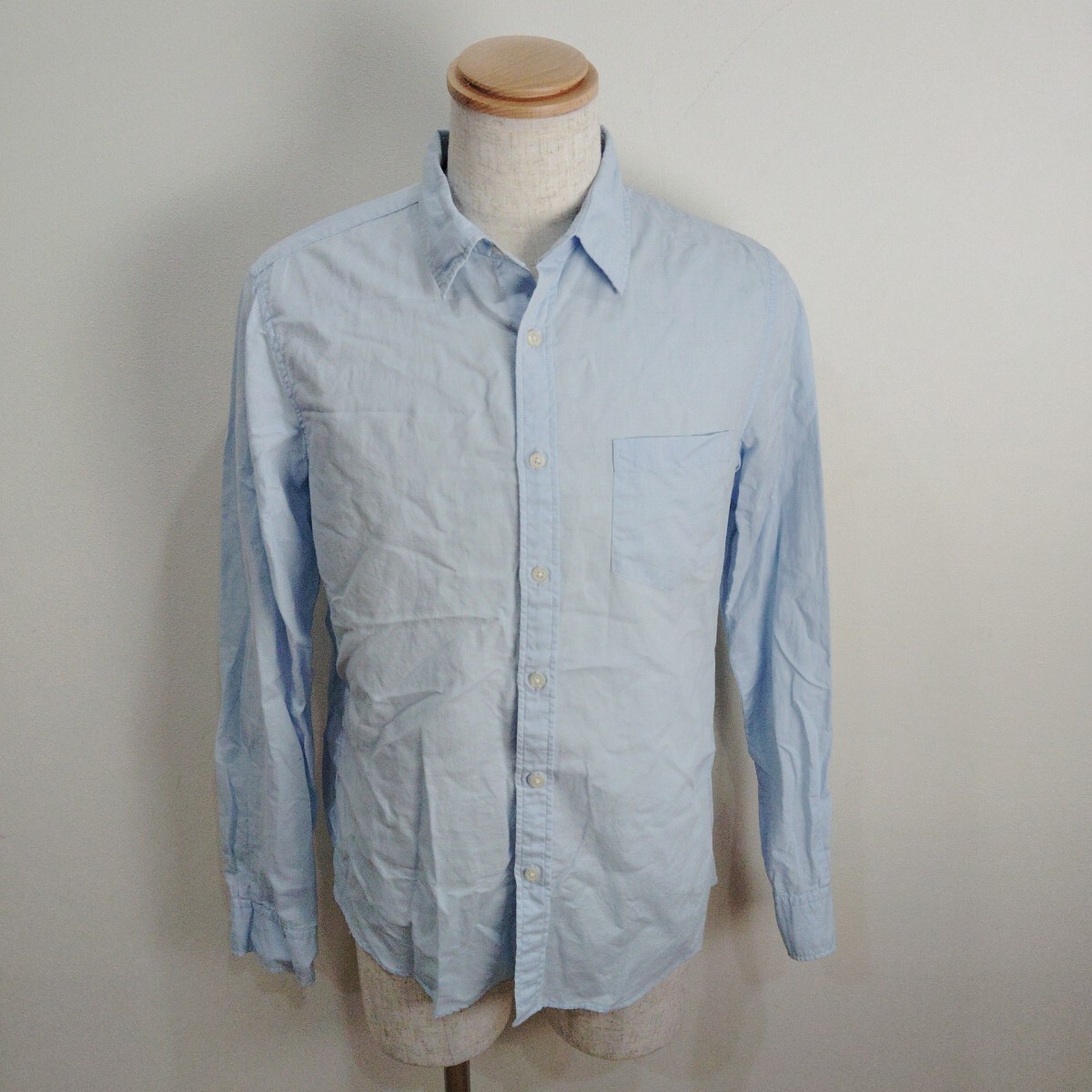 - 0925/L/nanouniverse メンズ 長袖シャツ フレンチリネン ライトブルー