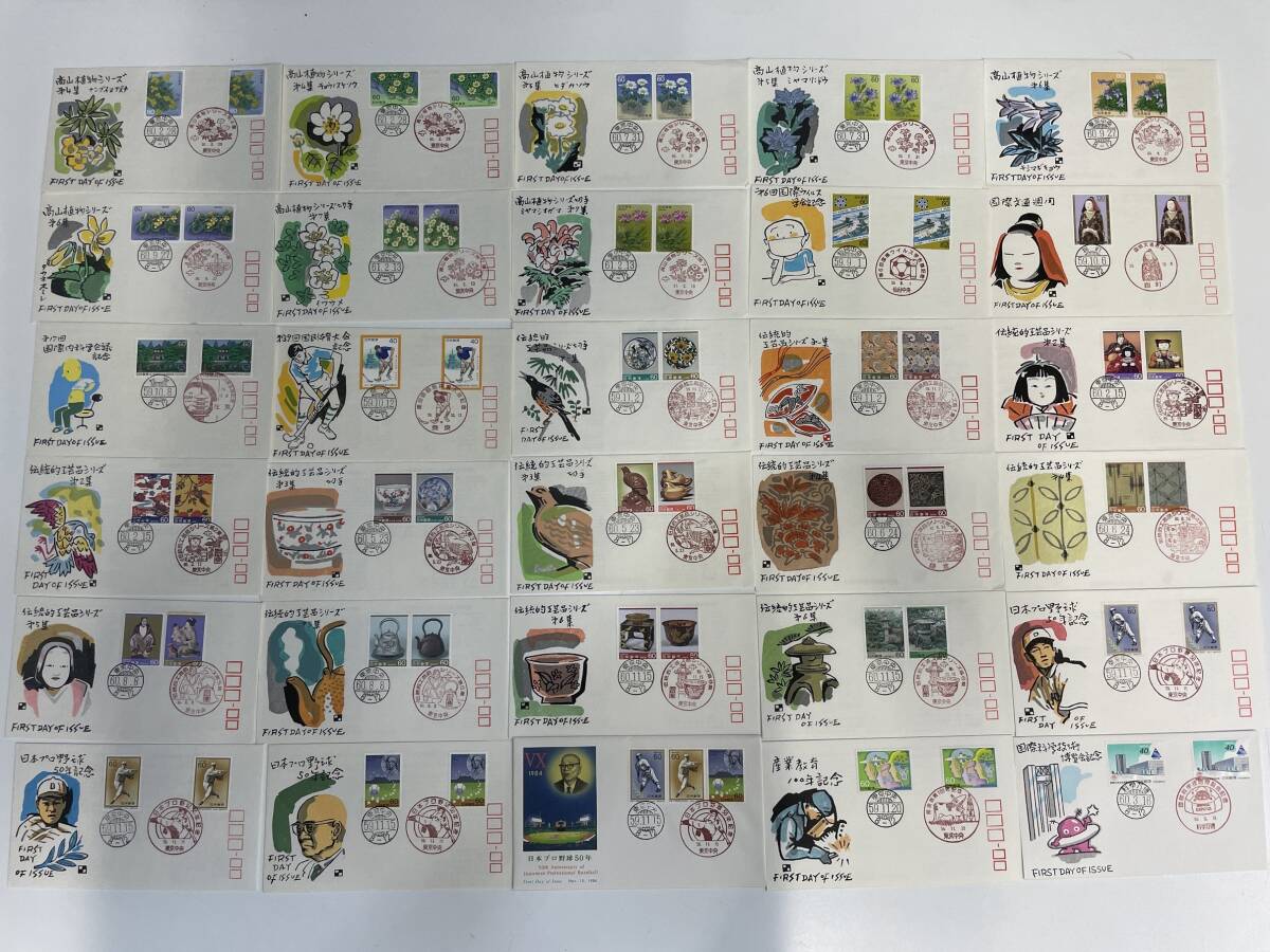 > 9-B116/4-60 日本郵便 初日カバー 記念切手 ハガキ 封筒 印有 100枚セット ファイル付き 昭和レトロ 希少 日本プロ野球50年記念 他 ⑬