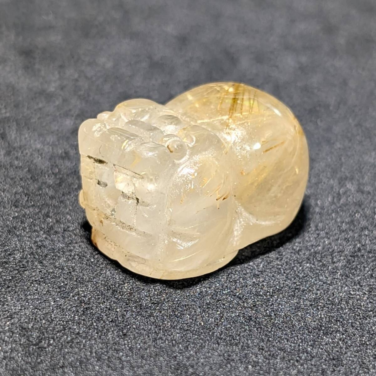 - ゴールド タイチンルチル 貔貅 ヒキュウ 金針水晶 エナジー パワーストーン 1点物 金銭運 お守り効果 成功へと導く オブジェ 置物 ギフト